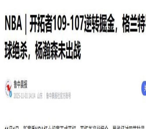 鲁中晨报:(NBA|开拓者109-107逆转掘金,格兰特罚球绝杀,杨瀚森未出战2025.11.01)